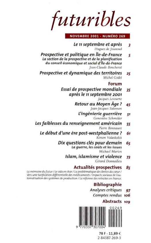 Forum Essai de prospective mondiale après le 11 septembre 2001 LESOURNE Jacques