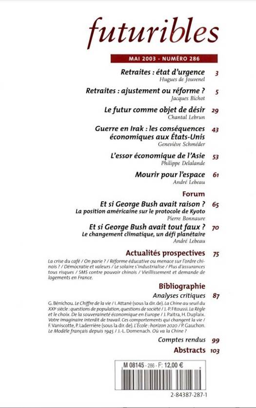Bibliographie Analyses critiques - G. Bénichou. Le Chiffre de la vie - Attané (sous la dir. de). La Chine au seuil du XXIe siècle : questions de population, questions de société - J.-P. Fitoussi. La Règle et le choix. De la souveraineté économique en Europe - J. PaitTa, H. Duplaix. Votre imaginaire interdit de travail. Ces comportements qui changent la vie - F. Vaniscotte, P. Laderrière (sous la dir. de). L'École : horizon 2020 - P. Gauchon. Le Modèle français depuis 1945 - J.-L Domenach. Où va la Chine ?