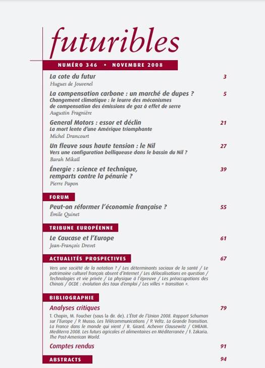 Bibliographie Analyses critiques - T. Chopin, M. Foucher (sous la dir. de). L’État de l’Union 2008. Rapport Schuman sur l’Europe - P. Musso. Les Télécommunications - P. Veltz. La Grande Transition. La France dans le monde qui vient - R. Girard. Achever Clausewitz - CIHEAM. Mediterra 2008. Les futurs agricoles et alimentaires en Méditerranée - F. Zakaria. The Post-American World. Comptes rendus
