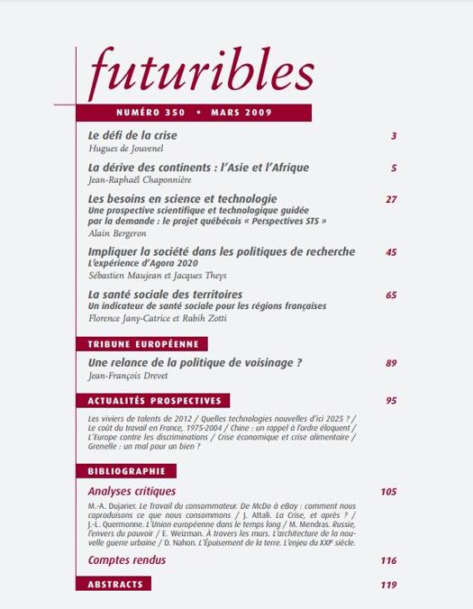 Actualités prospectives - Les viviers de talents de 2012 - Quelles technologies nouvelles d’ici 2025 ? - Le coût du travail en France, 1975-2004 - Chine : un rappel à l’ordre éloquent - L’Europe contre les discriminations - Crise économique et crise alimentaire - Grenelle : un mal pour un bien ?