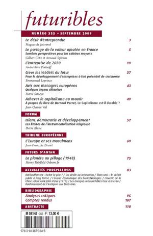 Actualités prospectives - Réchauffement : éviter le pire ? - Du déclin au renouveau - États-Unis : le déficit public à long terme - L’avenir économique des biotechnologies - L’avenir de la Chine selon Saint-John Perse (1917) - Les énergies renouvelables face à la crise - Renforcement de l’irréligion aux États-Unis.