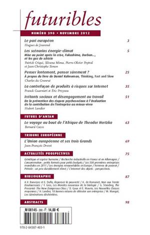 Actualités prospectives - Génétique et espèce humaine - Recherche industrielle en France et en Allemagne - Consommation : petits formats pour petits budgets - Les 500 premières entreprises mondiales en 2011 - Les énergies renouvelables en Europe - Femmes de pouvoir - Pétrole : un prix durablement élevé - L’Internet des objets : perspectives.