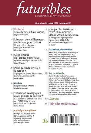 Chronique européenne - Élargir ou approfondir l’Union européenne ? Nouvelles composantes d’un ancien dilemme Jean-François Drevet - Coupler les transitions verte et numérique dans l’Union européenne. Le rapport de prospective stratégique 2022 de la Commission européenne Collectif