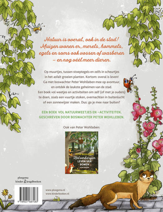 Natuur is overal, ook in de stad! Muizen wonen er, merels, hommels, egels en soms ook vossen of wasberen – en nog véél meer dieren. Op muurtjes, tussen stoeptegels en zelfs in scheurtjes in het asfalt groeien planten. Kortom: overal is leven! Ga met boswachter Peter Wohlleben mee op avontuur, en ontdek de talloze geheimen van de stad. Met veel dingen om zelf (of met je ouders) te doen, zoals een vuurtje stoken, overnachten in de tuin of een zonnewijzer maken. Dus: ga je mee naar buiten?