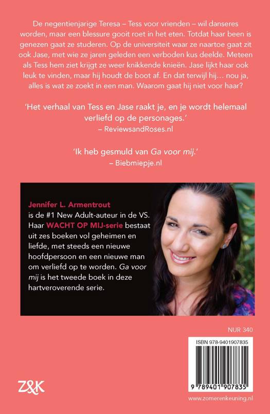 Ga voor mij (Engelse titel: Be with me) is broeierig en meeslepend, precies zoals een new adult hoort te zijn. Auteur J. Armentrout is in Nederland bekend van de boeken Wacht op mij en IJskoud. Ga voor mij is een zijdelings vervolg op Wacht op mij, waarin Teresa's broer Cam de hoofdrol speelde.