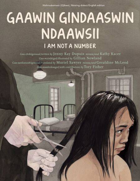 The dual language edition, in Nishnaabemwin (Ojibwe) Nbisiing dialect and English, of the award-winning I Am Not a Number. When eight-year-old Irene is removed from her First Nations family to live in a residential school she is confused, frightened, and terribly homesick. She tries to remember who she is and where she came from, despite the efforts of the nuns who are in charge at the school and who tell her that she is not to use her own name but instead use the number they have assigned to her. When she goes home for summer holidays, Irene's parents decide never to send her and her brothers away again. But where will they hide? And what will happen when her parents disobey the law? Based on the life of co-author Jenny Kay Dupuis’ grandmother, I Am Not a Number is a hugely necessary book that brings a terrible part of Canada’s history to light in a way that children can learn from and relate to.