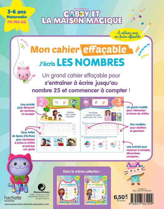 3. Gabby et la maison magique - Mon cahier effaçable - J'écris les nombres - (3-6 ans)