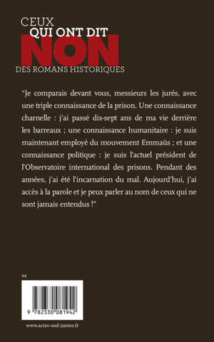 En 1984, Gabriel Mouesca est incarcéré. Il restera dix-sept ans en prison. Pendant son emprisonnement, il côtoie la détresse des prisonniers sans privilège et il emploie tout son temps et son énergie à la lutte contre les conditions de détention dans les prisons françaises où surpopulation, promiscuité, violence et brimades sont monnaie courante. Après sa sortie de prison, il devient chargé de mission à la Croix-Rouge puis, jusqu'en 2009, président de l'Observatoire international des prisons. Dans le dossier documentaire, l'auteur évoque les combats de ceux qui, aujourd'hui, tentent de faire tomber les murs de l'institution carcérale.