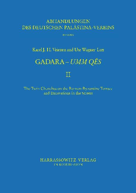 The second volume in the series on the archaeological exploration of ancient Gadara (Umm Qays, Jordan) by the German Protestant Institute for the Archaeology of the Holy Land (Amman) concentrates on the three areas of the Decapolis city that have been excavated in cooperation with the Theological Faculty of Utrecht University. The large terrace, down the slope of the upper city, was an urban focal area overlooking the lower city. Its western retaining wall was buttressed by a line of rooms, with a street or a piazza in front. The original remains on the terrace, constructed in the 2nd century C.E., may have been from a large Roman forum basilica. In the 6th century, the layout was completely remodeled into a Byzantine ecclesiastical compound, with a centralized church, a basilica, and courtyards, which - deducible from the tombs and reliquaries found - have perhaps served as a pilgrims' center. After the collapse of the terrace's buildings, the street or piazza to the west remained in use through the Early Islamic to Mamluk times, as the Roman water system continued to attract people. In the center of the lower city, part of the main street (decumanus maximus) was excavated, and in the course of this, earlier building remains were discovered underneath. In addition to the presentation of the excavated areas and their stratigraphy, the finds are described and discussed in separate contributions by various specialists on architecture, ceramics (Iron Age, Hellenistic - Mamluk periods), oil lamps, glass, coins, etc.
