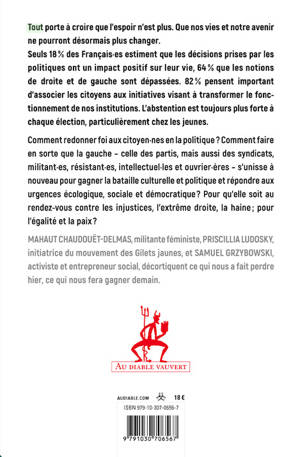 Comment redonner foi aux citoyennes en la politique ? Comment faire en sorte que la gauche – celle des partis, mais aussi des syndicats, militant·es, résistant·es, intellectuel·les et ouvrier·ères – s’unisse à nouveau pour gagner la bataille culturelle et politique et répondre aux urgences écologique, sociale et démocratique ? Pour qu’elle soit au rendez-vous contre les injustices, l’extrême droite, la haine ; pour l’égalité et la paix ?