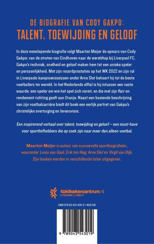 'Gakpo' van voetballiefhebber Maarten Meijer is een meeslepende biografie van Cody Gakpo, een van de belangrijkste Nederlandse voetballers van nu. Na zijn boek over Arne Slot volgt Maarten Meijer nu de opmars van Cody Gakpo: van de straten van Eindhoven naar de wereldtop bij Liverpool FC. Gakpo’s techniek, snelheid en geloof maken hem tot een unieke speler en persoonlijkheid. Met zijn recordprestaties op het WK 2022 en zijn rol in Liverpools kampioensseizoen onder Arne Slot is hij een sportheld van formaat. Tegelijkertijd biedt dit boek een eerlijk portret van Gakpo’s christelijke overtuiging en levensvisie. Een inspirerend verhaal over talent, toewijding en geloof – een must-have voor sportliefhebbers en boekverkopers die op zoek zijn naar meer dan alleen voetbal.