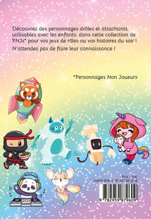 Découvrez des personnages drôles et attachants, utilisables avec les enfants, dans cette collection de PNJs* pour vos jeux de rôles ou vos histoires du soir ! N’attendez pas de faire leur connaissance ! *Personnages Non Joueurs