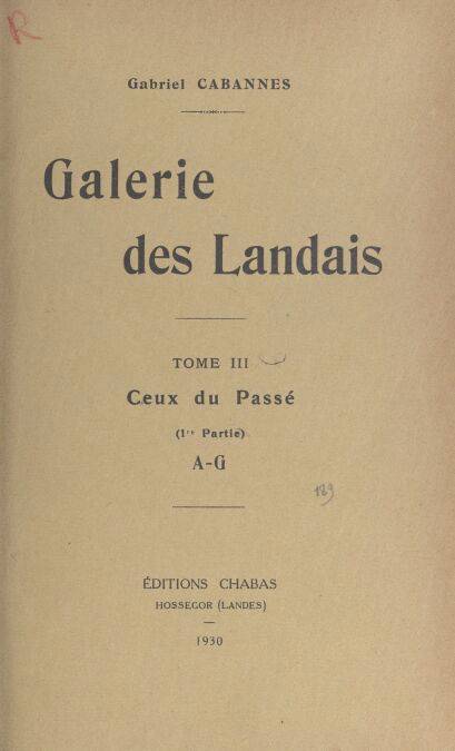 4. Galerie des Landais (3). Ceux du passé (1). A-G