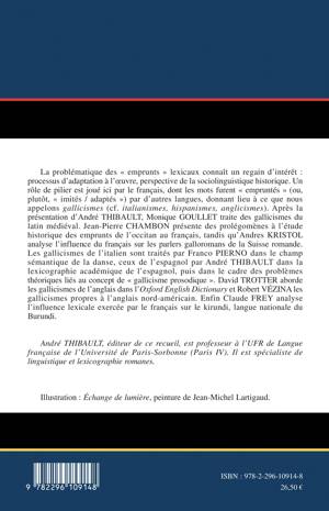 La problématique des "emprunts lexicaux connaît un regain d'intérêt: processus d'adaptation à l'oeuvre, perspective de la sociolinguistique historique. Un rôle de pilier est joué ici par le français, dont les mots furent "empruntés"(ou, plutôt,"imités/adaptés") par d'autres langues, donnant lieu à ce que nous appelons gallicismes (cf. italianismes, hispanismes, anglicismes).
