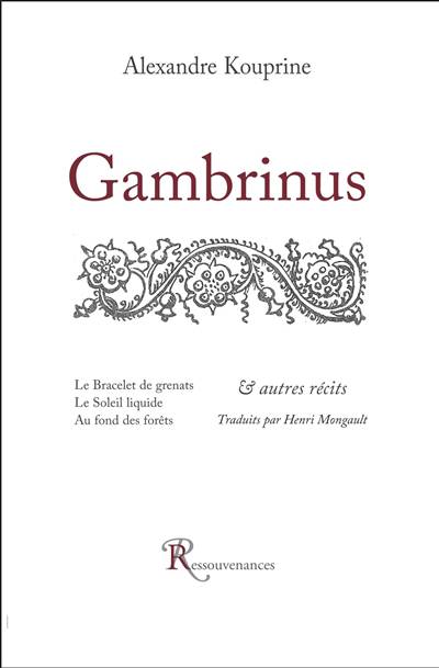 Longues nouvelles, romans brefs, témoignent de la « chatoyante polychromie du talent » d'Alexandre Kouprine (1870-1938), comme l'espérait Henri Mongault, auteur de ces traductions exemplaires.« Mutilez l'homme tant qu'il vous plaira, mais jamais, jamais, vous n'arriverez à vaincre l'art!» Le Gambrinus, du nom du dieu germanique de la bière, est une taverne de marins et malandrins où excelle Sachka, un humble violoniste respecté de tous jusqu'aux jours de 1905 où l'enthousiasme vaincu d'un espoir de liberté s'inverse en fureur pogromiste « les mêmes hommes »... Le Bracelet de grenats est le don d'un amour si parfait qu'il en semble irréel et imprime sa marque dans le coeur. Le Soleil liquide paraît comme un roman d'anticipation où bientôt s'abolit le mirage de la science.