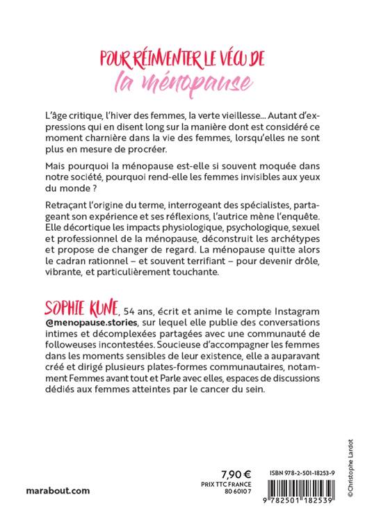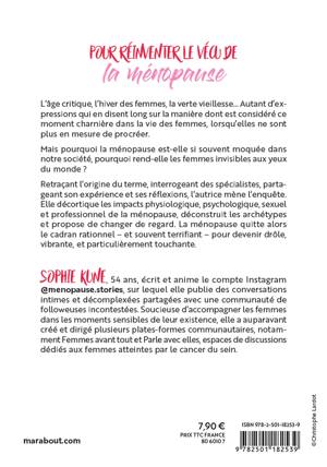 L’âge critique, l’hiver des femmes, la verte vieillesse… Autant d’expressions qui en disent long sur la manière dont est considéré ce moment charnière dans la vie des femmes, lorsqu’elles ne sont plus en mesure de procréer. Mais pourquoi la ménopause est-elle si souvent moquée dans notre société, pourquoi rend-elle les femmes invisibles aux yeux du monde ? Retraçant l’origine du terme, interrogeant des spécialistes, partageant son expérience et ses réflexions, l’autrice mène l’enquête. Elle décortique les impacts physiologique, psychologique, sexuel et professionnel de la ménopause, déconstruit les archétypes et propose de changer de regard. La ménopause quitte alors le cadran rationnel – et souvent terrifiant – pour devenir drôle, vibrante, et particulièrement touchante.