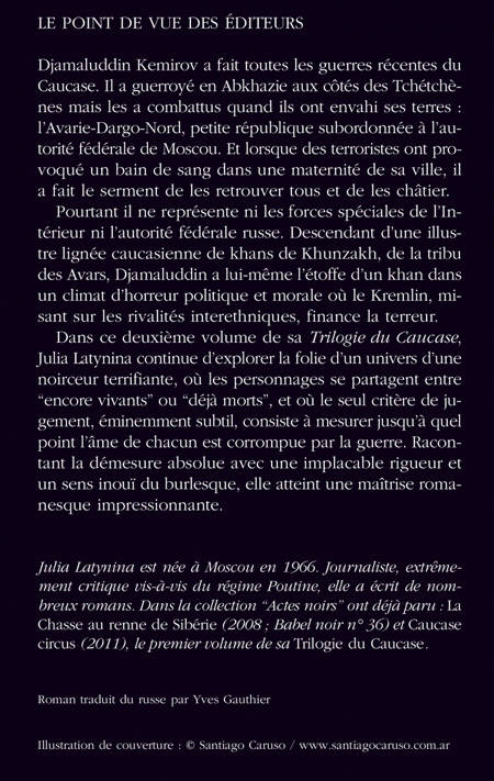 Natif des terres de Hadji Murat qui inspira jadis Tolstoï, Djamaluddin a fait toutes les guerres contemporaines du Midi russe, avec ou contre les Tchétchènes. En vrai justicier caucasien, khan des temps modernes, il vengera par le sang un attentat terroriste perpétré contre une maternité dans une guerre qui nous révèlera un Caucase où l'économie, la terreur, la corruption, l'islamisme et l'élite fédérale russe cohabitent dans une alliance nébuleuse. Le deuxième volume de «La Trilogie du Caucase», entamée avec «Caucase circus».