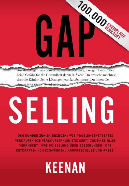 Gap Selling ist ein Buch, welches das Spiel ändert und den Verkaufs-IQ von Vertriebsorganisationen überall auf der Welt erhöhen soll. In seinem unverblümten und respektlosen Stil räumt Keenan mit den müden alten Verkaufsmythen auf, die für die frustrierenden Verkaufsprobleme von heute verantwortlich sind, und zeigt einen verblüffend wirkungsvollen neuen Weg auf, mit Käufern in Beziehung zu kommen.