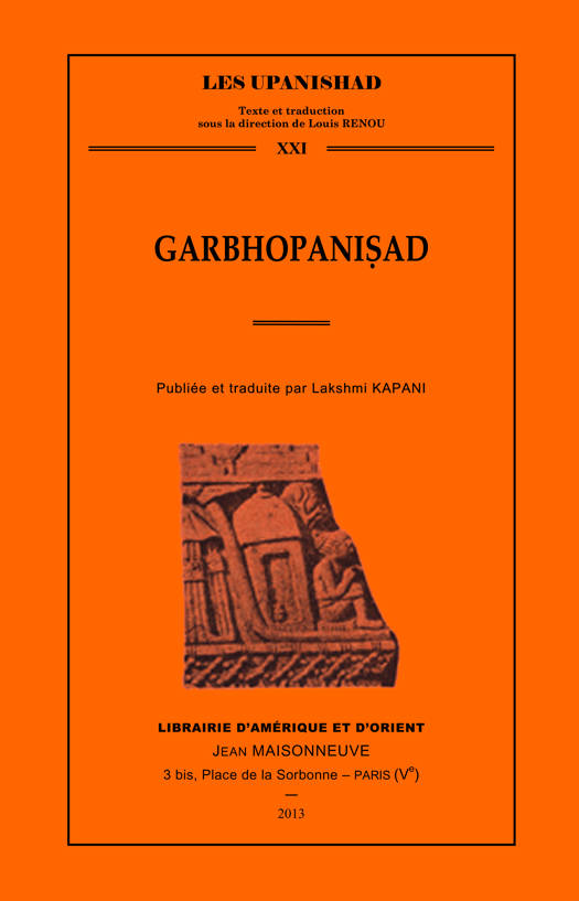 La Garbha-Upanisad est recensée dans la liste des 108 Upanisad qu'énumère la Muktikâ-Upanisad. Post-védique, elle se rattache à la tradition atharvanique, comme le confirme le nom de son auteur Pippalâda. Comme son nom l'indique, " l'Upanisad de l'embryon", est un court traité d'embryologie. Elle se situe à la rencontre de plusieurs courants : le Sâmkhya-yoga, les textes médicaux tels que les Caraka- et Susruta samhitâ, ainsi que le Vedânta. Il existe plusieurs éditions de cette Upanisad. Le texte que nous publions est celui des 108 Upanisads, édité par Nirnaya-sâgara Press, Bombay, 1925. Pour essayer de rendre compte du mouvement du texte, peut distinguer les parties suivantes: constitution du corps et psycho-physiologie; étapes du développement embryonnaire et foetal jusqu'au huitième mois; étiologie des malformations ; embryologie et sotériologie, le neuvième mois et la naissance ; corrélations entre les lieux du corps et les éléments du sacrifice ; brève récapitulation anatomique. Conclusion abrupte: " tel le traité de la délivrance de Pippalâda ".
