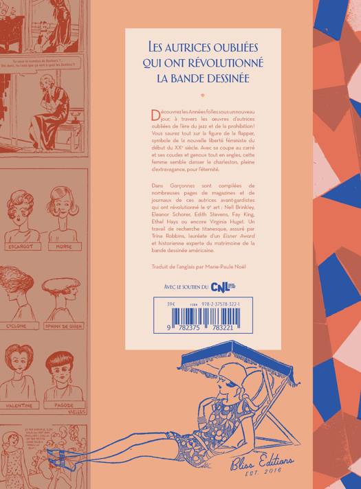Les autrices oubliées qui ont révolutionné la bande dessinée. Découvrez les Années folles sous un nouveau jour, à travers les oeuvres dautrices oubliées de lère du jazz et de la prohibition ! Vous saurez tout sur la figure de la flapper, symbole de la nouvelle liberté féministe du début du XXe siècle. Avec sa coupe au carré et ses coudes et genoux tout en angles, cette femme semble danser le charleston, pleine dextravagance, pour léternité. Dans Garçonnes sont compilées de nombreuses pages de magazines et de journaux de ces autrices avant-gardistes qui ont révolutionné le 9e artNell Brinkley, Eleanor Schorer, Edith Stevens, Fay King, Ethel Hays ou encore Virginia Huget. Un travail de recherche titanesque, assuré par Trina Robbins, lauréate dun Eisner Award et historienne experte du matrimoine de la bande dessinée américaine. Traduit de langlais par Marie-Paule Noël