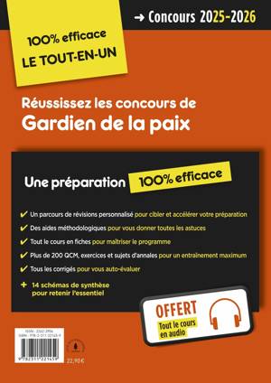 Notre livre offre une préparation rapide et complète aux concours externe et interne de gardien de la paix.