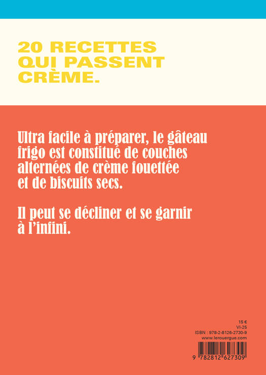 Vous disposez d'un frigo ? Voici une vingtaine de recettes de gâteaux sans cuisson, ultra faciles, réalisables par toute la famille, qui doivent tous être conservés quelques heures au frais avant d'être servis. Crème fouettée, Petits bruns, sablés, boudoirs, chocolat, gingembre confit, fruits rouges... Tout est permis ! Un livre de cuisine pop et coloré absolument irrésistible.
