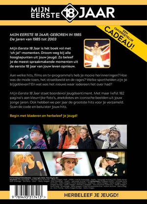 Mijn Eerste 18 Jaar staat boordevol jeugdsentiment. Met maar liefst 182 pagina’s aan kleurrijke foto’s, anekdotes en iconische beelden uit jouw jonge jaren. Ook hebben we per jaar de grootste hits voor je verzameld. Scan de code en beluister jouw hits.