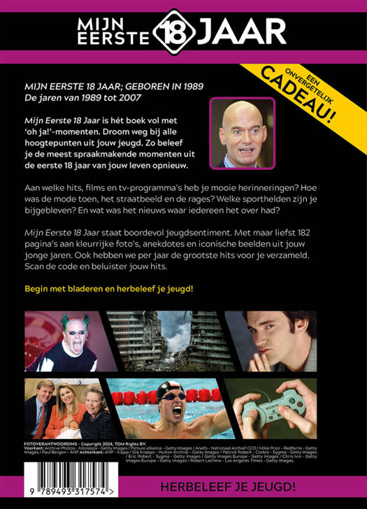 Mijn Eerste 18 Jaar is hét boek vol met ‘oh ja!’-momenten. Droom weg bij alle hoogtepunten uit jouw jeugd. Zo beleef je de meest spraakmakende momenten uit de eerste 18 jaar van jouw leven opnieuw.