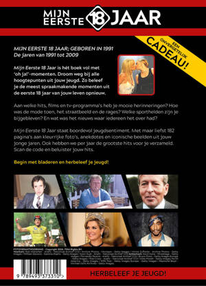 Mijn Eerste 18 Jaar staat boordevol jeugdsentiment. Met maar liefst 182 pagina’s aan kleurrijke foto’s, anekdotes en iconische beelden uit jouw jonge jaren. Ook hebben we per jaar de grootste hits voor je verzameld. Scan de code en beluister jouw hits.
