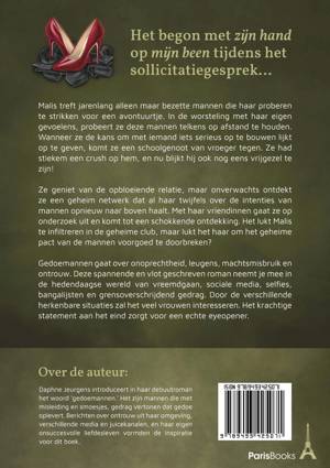 Over de auteur: Daphne Jeurgens introduceert in haar debuutroman het woord ‘gedoemannen.’ Het zijn mannen die met leugens en smoesjes, gedrag vertonen dat gedoe oplevert. Berichten over ontrouw uit haar omgeving, in de media, via verschillende juicekanalen, en haar eigen onsuccesvolle liefdesleven, vormden inspiratie voor dit boek.