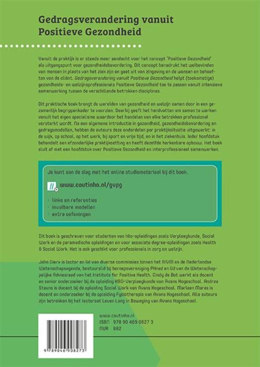Dit praktische boek brengt de werelden van gezondheid en welzijn samen door in een gezamenlijk begrippenkader te voorzien. Daarbij geeft het handvatten om samen te werken vanuit het eigen specialisme waardoor het handelen van elke betrokken professional versterkt wordt. Na een algemene introductie in gezondheid, gezondheidsbevordering en gedragsmodellen, hebben de auteurs deze onderdelen per praktijksituatie uitgewerkt: in de wijk, op het werk, op school, in sport en vrije tijd en in het ziekenhuis. Ieder hoofdstuk behandelt een afzonderlijke praktijksetting en heeft dezelfde herkenbare opbouw.