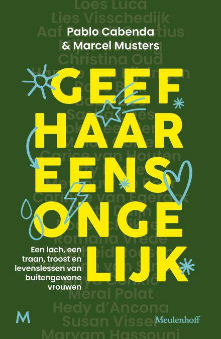 Marcel Musters en Pablo Cabenda laten bijzondere vrouwen uit hun leven vertellen over hun persoonlijkste ervaringen – met bijdragen van o.a. Lies Visschedijk, Aaf Brandt Corstius, Loes Luca, Hedy d'Ancona, Carice van Houten en Adelheid Roosen Marcel Musters koestert vrouwen en heeft een flink aantal bijzondere vriendschappen met vrouwen. De acteur kent er wel honderd die iets speciaals voor hem betekenen. En wat hij aan levenswijsheid heeft opgestoken, komt grotendeels van hen. Oude en jonge vrouwen, bekende en minder bekende vrouwen, vrouwen die andere vrouwen helpen kinderen op de wereld te zetten of vrouwen die voor oorlog op de vlucht zijn. Ze moesten maar eens uitgebreid aan het woord komen. Gewoon, omdat het leuk is ze weer eens te spreken, maar ook omdat we leven in een wereld die is ingericht op mannen. Mannen zijn de norm, vrouwen zijn sociaal-maatschappelijk minder zichtbaar. In Geef haar eens ongelijk laat Marcel met journalist Pablo Cabenda 'zijn' vrouwen vertellen over hun persoonlijkste ervaringen en levenswijsheden. Om te lachen, te huilen, om je te verwonderen en te laten inspireren, en misschien zelfs om van te leren. In de pers 'Ze zijn allemaal op hun eigen manier bezig om hun eigen wereld en dus ook dé wereld op een creatieve manier beter te maken. Dat werkt heel stimulerend.' Interview met Marcel Musters in LINDA.