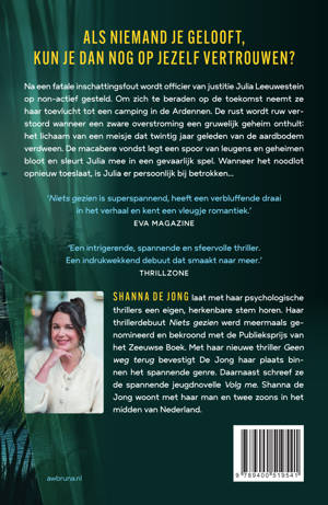 Na een fatale inschattingsfout wordt officier van justitie Julia Leeuwestein op non-actief gesteld. Om zich te beraden op de toekomst neemt ze haar toevlucht tot een camping in de Ardennen. De rust wordt ruw verstoord wanneer een zware overstroming een gruwelijk geheim onthult: het lichaam van een meisje dat twintig jaar geleden van de aardbodem verdween. De macabere vondst legt een spoor van leugens en geheimen bloot en sleurt Julia mee in een gevaarlijk spel. Wanneer het noodlot opnieuw toeslaat, is Julia er persoonlijk bij betrokken…
