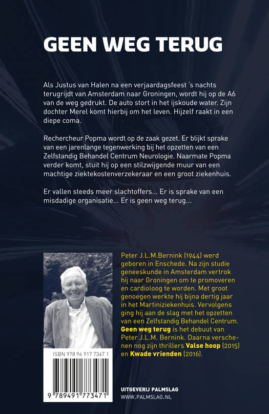 Peter J.L.M. Bernink (1944) werd geboren in Enschede. Na zijn studie geneeskunde in Amsterdam vertrok hij naar Groningen. Als cardioloog was hij werkzaam in het UMCG en het Martiniziekenhuis te Groningen. In 2014 publiceerde hij zijn debuut Geen Weg Terug, waarna er ieder jaar een nieuwe thriller van zijn hand verscheen.