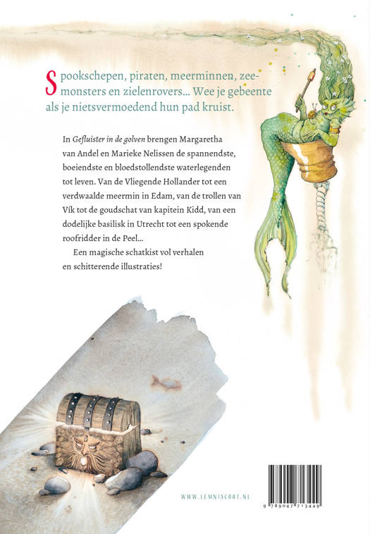 In Gefluister in de golven deelt Margaretha van Andel met onnavolgbaar vertelplezier de spannendste, boeiendste en meest tot de verbeelding sprekende waterverhalen. Van de Vliegende Hollander tot een verdwaalde meermin in Edam, van de trollen van Vik tot het goud van kapitein Kidd. Van Olde Boppe uit Drenthe tot de basilisk van Utrecht en van de roofridder in De Peel tot de heks van het Oerd op Ameland…
