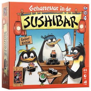Geharrewar in de Sushibar is een vrolijk dobbelspel voor het hele gezin. Door te dobbelen mag je sushitegels uit een rij pakken. Gratentegels zijn minpunten waard. Omdat sushitegels alleen bij de eindscore meetellen als je hier ook een gratentegel tegenover kunt zetten, moet je ook gratentegels verzamelen.
