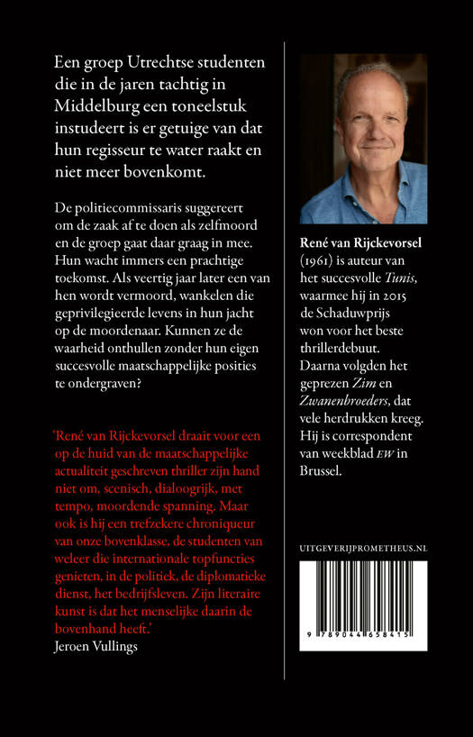 René van Rijckevorsel (1961) is auteur van het succesvolle Tunis, waarmee hij in 2015 de Schaduwprijs won voor het beste thrillerdebuut. Daarna volgden het geprezen Zim en Zwanenbroeders, dat vele herdrukken kreeg. Hij is correspondent van weekblad EW in Brussel.
