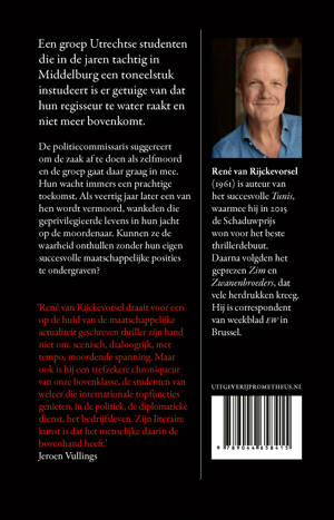 ‘René van Rijckevorsel draait voor een op de huid van de maatschappelijke actualiteit geschreven thriller zijn hand niet om, scenisch, dialoogrijk, met tempo, moordende spanning. Maar ook is hij een trefzekere chroniqueur van onze bovenklasse, de studenten van weleer die internationale topfuncties genieten, in de politiek, de diplomatieke dienst, het bedrijfsleven. Zijn literaire kunst is dat het menselijke daarin de bovenhand heeft.’