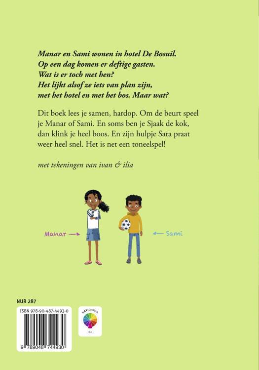 Spannend toneelleesboek op AVI E4 over geheimen in hotel De Bosuil. Sami en Manar wonen in het mooie hotel middenin het bos. Dan horen ze dat er plannen zijn om het bos te kappen om plaats te maken voor huizen. Lukt het de kinderen om de plannen tegen te houden? Samen hardop lezen alsof je een toneelstuk opvoert, zo lees je dit boek. Verdeel de rollen en lees de tekst zo spannend, grappig, snel of rustig voor als je wilt. Maak er samen iets leuks van!