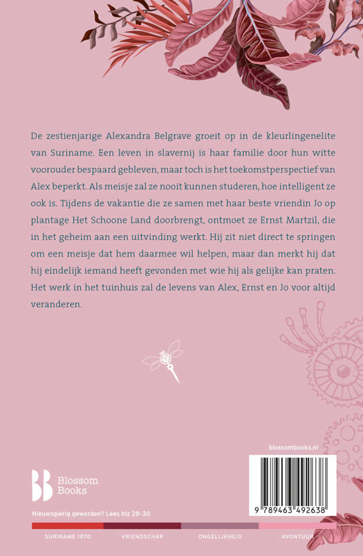 De zestienjarige Alexandra Belgrave groeit op in de kleurlingenelite. Een leven in slavernij is haar familie door hun witte voorouder bespaard gebleven, maar toch is het toekomstperspectief van Alex beperkt. Als meisje zal ze nooit kunnen studeren, hoe intelligent ze ook is. Tijdens de vakantie die ze samen met haar beste vriendin Jo op plantage Het Schoone Land doorbrengt, ontmoet ze Ernst Martzil, die in het geheim een machine aan het bouwen is. Hij zit niet direct te springen om een meisje dat hem daarmee wil helpen, maar dan merkt hij hoe slim en vindingrijk Alex is. Zouden Ernst en Alex met de nieuwe uitvinding hun eigen toekomst kunnen veranderen?