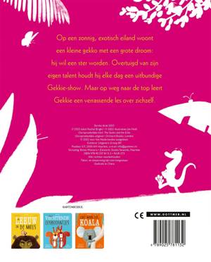 Deze kartonnen editie van het prentenboek 'Gekkie de gekko' is een tropische kleurexplosie! Bestsellerduo Rachel Bright en Jim Field hebben hun sporen dubbel en dwars verdiend met geliefde kinderboeken als 'De leeuw in de muis', 'Twee vechtende eekhoorntjes', 'Laat maar los, Koala' en 'Lars de dwarse dromedaris'. Elk prentenboek dat Bright en Field samen maken is een fabelachtig feestje vol kleur en muzikaal rijm. En ook dit verhaal heeft een subtiele boodschap: je krijgt wat je geeft.
