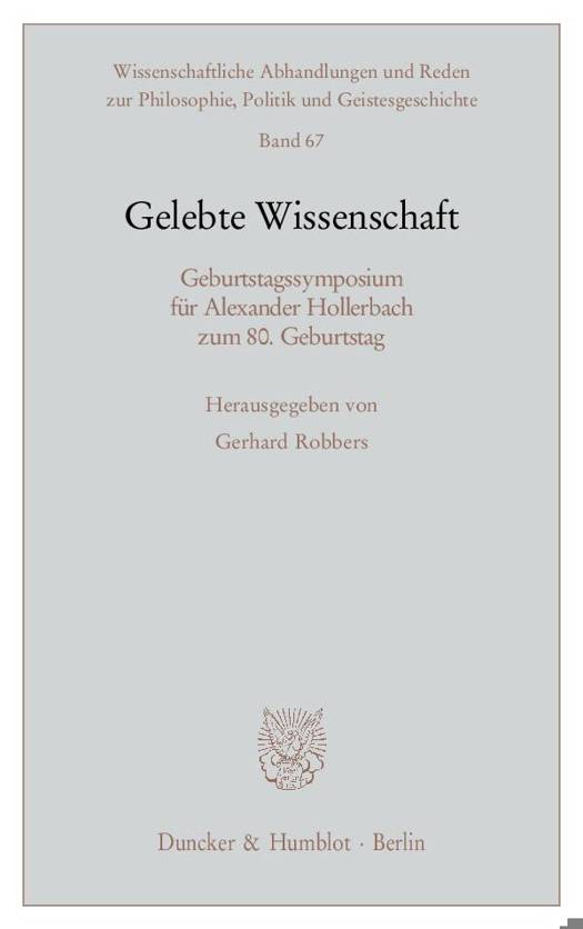 Am 23. Januar 2011 hat Alexander Hollerbach sein achtzigstes Lebensjahr vollendet. Aus diesem Anlass fand am 29. Januar 2011 in Freiburg ein wissenschaftliches Kolloquium statt. Dieser Band dokumentiert die dabei gehaltenen Vorträge und Reden.