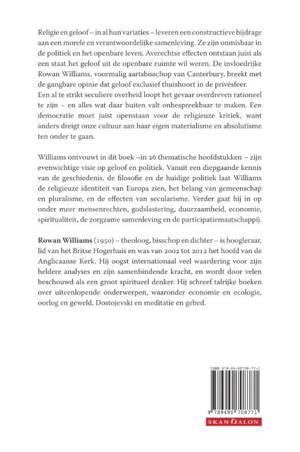 Religie en geloof - in al hun variaties - leveren een constructieve bijdrage aan een morele en verantwoordelijke samenleving. Ze zijn onmisbaar in de politiek en het openbare leven. Averechtse effecten ontstaan juist als een staat het geloof uit de openbare ruimte wil weren. De invloedrijke Rowan Williams, voormalig aartsbisschop van Canterbury, breekt met de gangbare opinie dat geloof exclusief thuishoort in de privésfeer. Een al te strikt seculiere overheid loopt het gevaar overdreven rationeel te zijn ¬- en alles wat daarbuiten valt onbespreekbaar te maken. Een democratie moet juist openstaan voor religieuze kritiek, want anders dreigt onze cultuur aan haar eigen materialisme en absolutisme ten onder te gaan.