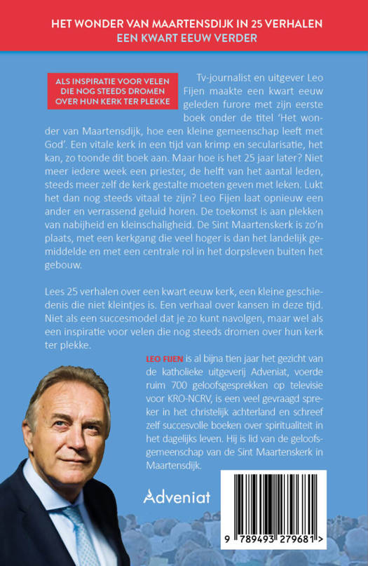 Het wonder van Maartensdijk, hoe een kleine gemeenschap leeft met God. Tv-journalist en uitgever Leo Fijen maakte een kwart eeuw geleden furore met zijn eerste boek onder die titel. Een vitale kerk in een tijd van krimp en secularisatie, het kan, zo toonde dit boek aan. Maar hoe is het 25 jaar later? Niet meer iedere week een priester, de helft van het aantal leden, steeds meer zelf de kerk gestalte moeten geven met leken. Lukt het dan nog steeds vitaal te zijn? Leo Fijen laat opnieuw een ander en verrassend geluid horen. De toekomst is aan plekken van nabijheid en kleinschaligheid. De Sint Maartenskerk is zo’n plaats, met een kerkgang van 25% of meer en een centrale rol in het dorpsleven buiten het gebouw.