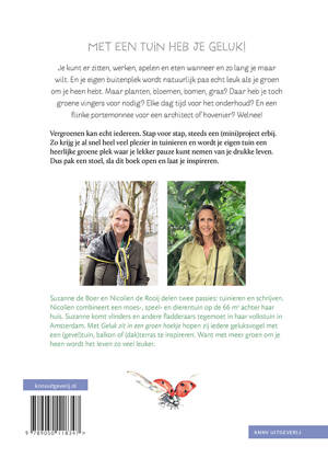Suzanne de Boer en Nicolien de Rooij delen twee passies: tuinieren en schrijven. Nicolien combineert een moes-, speel- en dierentuin op de 66 vierkante meter achter haar huis. Suzanne komt vlinders en andere fladderaars tegemoet in haar volkstuin in Amsterdam. Met Geluk zit in een groen hoekje hopen zij iedere geluksvogel met een (gevel)tuin, balkon of (dak) terras te inspireren. Want met meer groen om je heen wordt het leven zo veel leuker.