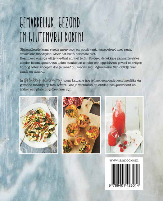 Gemakkelijk, gezond en glutenvrij koken Glutenallergie komt steeds meer voor en wordt vaak geassocieerd met saaie, smakeloze maaltijden. Maar dat hoeft helemaal niet! Haal meer energie uit je voeding en voel je fit! Probeer de lekkere pannenkoekjes zonder bloem, geniet van lichte maaltijden zonder een opgeblazen gevoel te krijgen én nog beter: snoepen doe je vanaf nu zonder schuldgevoelens. Van ontbijt over lunch tot diner... In Gelukkig glutenvrij toont Laura je hoe je heel eenvoudig een heerlijke én gezonde maaltijd op tafel tovert. Laat je verrassen en ontdek hoe gevarieerd en lekker een glutenvrij dieet kan zijn!