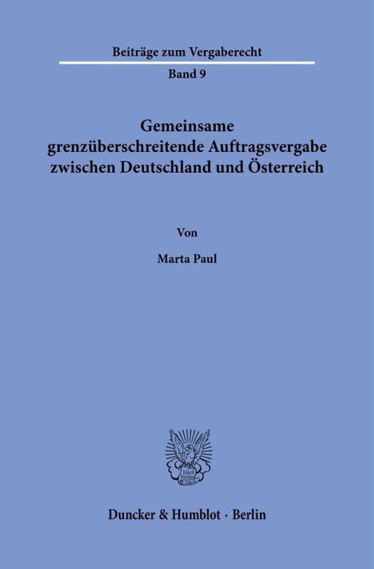 English summary: Joint Cross-Border Procurement Between Germany and Austria Procurement cooperations increase efficiency in public procurement: The pooling of resources and the reduced administrative workload promote more favorable contract conditions and sustainable solutions. The EU therefore introduced regulations on this topic in the 2014 Public Procurement Directives. Country reports show the implementation of these EU requirements in Austria and Germany, differences are analyzed and recommendations for action are derived. German description: Beschaffungskooperationen bieten grosses Potenzial zur Effizienzsteigerung im offentlichen Vergabewesen: Durch die Bundelung von Ressourcen und die Reduzierung des Verwaltungsaufwands werden gunstigere Vertragsbedingungen und nachhaltige Losungen gefordert. Der europaische Gesetzgeber sieht in der grenzuberschreitenden Kooperation eine Chance zur Starkung des Binnenmarkts und hat daher in den Vergaberichtlinien 2014 Vorschriften zur Rechtswahl bei grenzuberschreitenden Beschaffungen eingefuhrt. Landesberichte zeigen, wie Osterreich und Deutschland diese EU-Vorgaben umsetzen; die Unterschiede werden analysiert und Handlungsempfehlungen fur deutsch-osterreichische Projekte entwickelt. Im Ergebnis weisen die EU-Richtlinien Entwicklungspotenzial auf, da der Art. 39 VRL nicht alle Herausforderungen lost und eine Spannung zwischen Harmonisierung und nationaler Autonomie besteht.