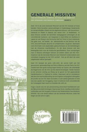 Deel XIV in de serie Generale Missiven van de VOC bestaat uit twee banden. Deze bevatten samenvattingen in hedendaags Nederlands en oorspronkelijke citaten van de algemene brieven van Gouverneur-Generaal en Raden in Batavia aan Heren XVII in Nederland. In deze brieven worden de berichten weergegeven ontvangen uit de verschillende kantoren, van Kaapstad in Zuid-Afrika tot Deshima in Japan en van Kharg in de Perzische Golf tot Timor in Oost-Indonesië. Die gaan over de handel, de administratie en het bestuur van de VOC, inclusief fraude, desertie en schipbreuken. Zij geven daarnaast veel informatie over plaatselijke gebeurtenissen en de betrekkingen met de inheemse machthebbers. Zo zijn deze brieven ook een belangrijke bron voor de Aziatische geschiedenis. Door verwijzingen naar in Batavia ontvangen brieven uit andere delen van het VOC-imperium zijn de Generale Missiven voor historisch onderzoekers een onmisbare toegang tot het VOC-archief. Ook op dit deel zijn weer uitgebreide indices gemaakt.