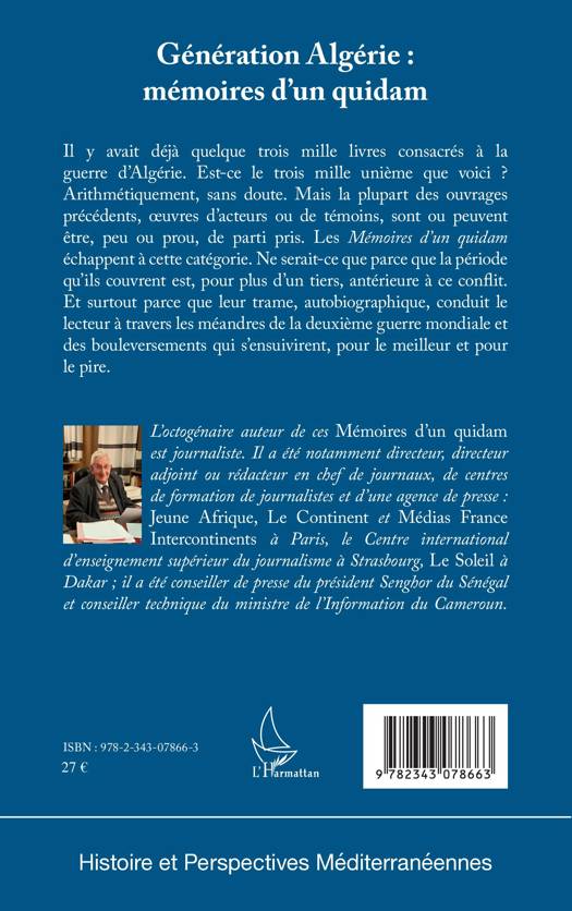 Journaliste et ancien correspondant de presse à Alger à la fin de la guerre d'Algérie, Philippe Gaillard nous livre un récit autobiographique. La période qu'il couvre est, pour plus d'un tiers, antérieure à la guerre d'Algérie, et conduit le lecteur à travers les méandres de la Seconde Guerre mondiale jusqu'au conflit algérien et aux bouleversements qui s'ensuivirent.