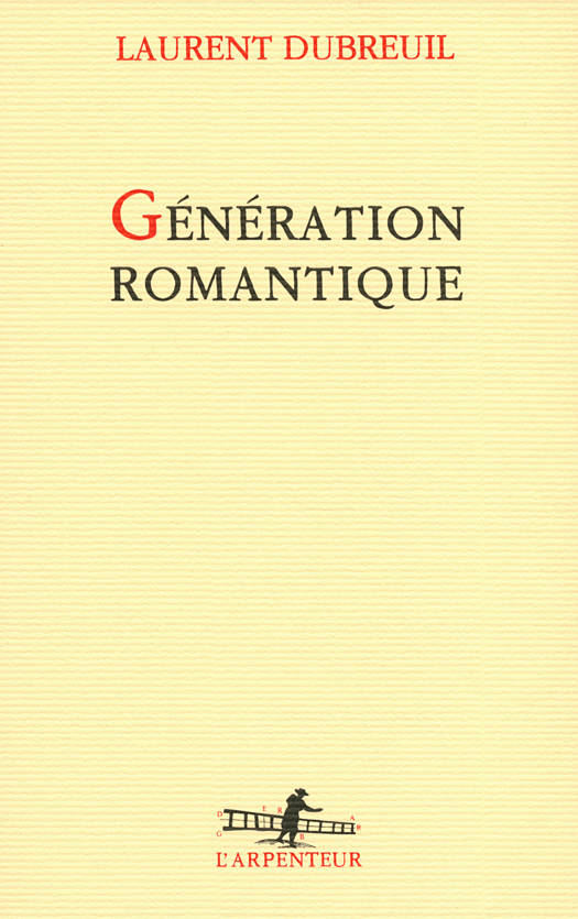 "Nous avions été tour à tour les descendants d'un soulèvement, les rejetons bâtards des fleurs et du pouvoir, les enragés déçus de l'espérance, les anéantis dépressifs ou blasés sur le point de rentrer dans le rang. Sans aucun doute, nous étions souffrants. Une nuit, quelqu'un risqua ce diagnostic : peut-être s'agit-il d'un nouveau mal du siècle ? Le mot de romantisme fut ainsi prononcé à demi ! Nous n'avions jusqu'alors guère attaché d'importance à ce substantif racorni, miteux. Pourtant, le rêve clandestin et vif d'une régénération avait survécu dans l'art que nous chérissions en secret. Un tel songe ramenait avec lui les promesses de l'adolescence, le lyrisme de la nature, l'enthousiasme. Je ne pouvais plus croire à la manière d'autrefois ; mais j'avais bien l'intention de reprendre à coeur le projet du romantisme, quitte à en dévoyer l'histoire ou la doctrine. Il nous fallait donc rassembler les forces dissipées, retrouver le goût des préludes, réactiver la mémoire dans le sens de l'avenir, inventer après Chateaubriand ou Poe de nouvelles Amériques, et ne plus cesser de jouer avec le feu ou l'orage." Laurent Dubreuil.